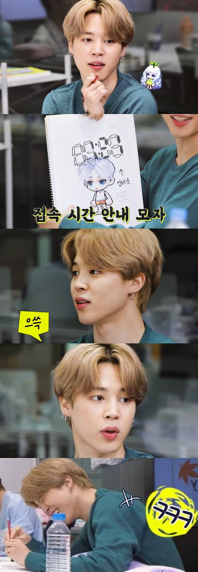 이어 지민은 아이디어 스케치에 '유저들 어깨 위에 올라가게 할거예요'라고 재연해 보이는 등 적극적으로 참여, 시종일관 밝은 분위기를 이끌었다.
