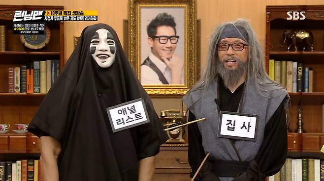 유재석은 "원래 눈에 렌즈를 껴야 하는데 우리 '런닝맨'을 많은 분들이 뵐 수 있으니까 렌즈를 뺐더니 산에서 고생하시는 분이 됐다. 원래 좀비다. 화살을 맞은 거다. '킹덤'을 보신 분은 아실 거다. 렌즈를 안 끼니까 그냥 고생한 도사님이다"고 말했다.
