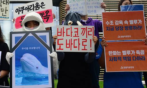 동물자유연대 대표는 “최근 10년간 국내 수족관 돌고래 두 마리 중 한 마리가 죽어가고 있어 폐사율이 50% 육박하고 있다”면서 “야생에서 넓은 바다에서 살아가야 할 벨루가 또한 감옥 같은 좁은 수족관 안에서 계속해서 죽어가고 있다”고 주장했다.