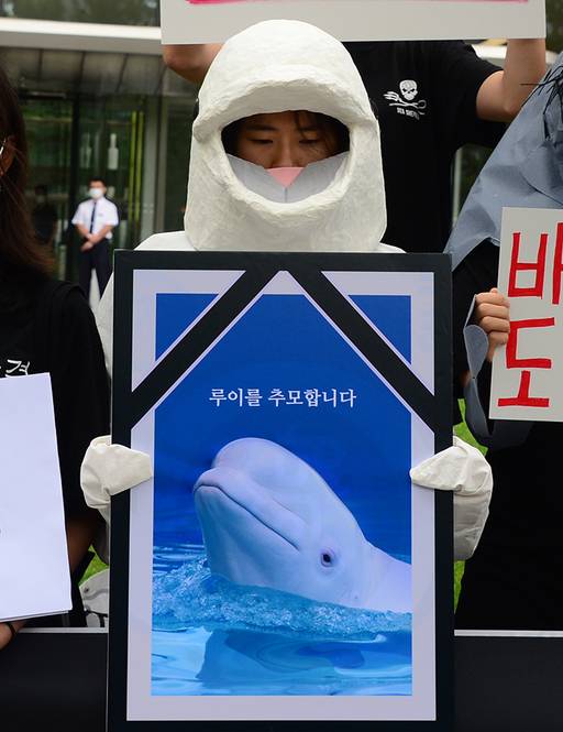 이 자리에 시민단체들은 공동기자회견문을 발표했다. 이들은 “야생 벨루가의 평균 수명은 30~50년에 이른다”며 “‘루이’는 고작 12살이다. 이틀 전 울산 남구 고래생태체험관의 돌고래 ‘고아롱’도 폐사했다. 고래류가 아쿠아리움과 같은 감금 시설에서 정상적으로 삶을 영위할 수 없다는 것이 다시 한 번 증명됐다”고 강조했다.