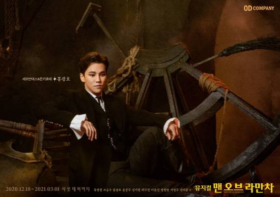 ‘세르반테스/돈키호테’ 역의 류정한, 조승우, 홍광호는 클래식한 유럽 복식을 차려 입고 귀족이자 작가 ‘세르반테스’ 그 자체로 변신했다. ‘세르반테스’는 신성모독죄로 감옥에 끌려와 죄수들에게 자신이 쓴 이야기를 들려주는 화자로 류정한은 ‘세르반테스’의 분위기를 그대로 살려 진중하고 위엄 있는 모습을, 조승우는 꿈을 향해 가는 기사(騎士)의 진실하고 기품 있는 모습을 표현했다. 홍광호는 결연하고 곧은 의지가 담긴 지성인 ‘세르반테스’의 모습을 한 컷에 담아내 뮤지컬 '맨오브라만차'의 국내 톱클래스 배우들의 강렬한 존재감을 뿜어냈다.