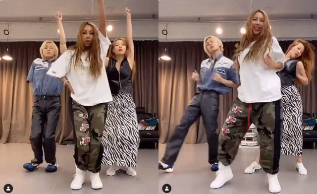 공개된 영상 속에는 나란히 서 '눈누난나' 챌린지를 하고 있는 제시, 현아, 던의 모습이 담겼다.