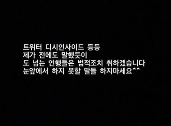 그러면서 "경고하는거다. 똑똑하게 행동하시길"이라고 덧붙이며 강경 대응을 예고했다. 이에 더해 인스타그램 스토리를 통해서도 "도 넘는 언행들은 법적 조치 취하겠다. 눈 앞에서 하지 못할 말들 하지마라"고 거듭 경고했다.