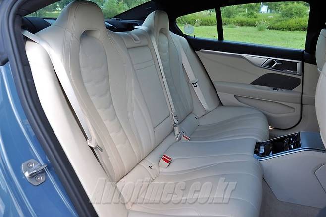 8시리즈는 1열보다 2열에서의 만족이 더 높다. 물론 7시리즈처럼 쇼퍼드리븐 성격이 강한 차는 아니지만 그럼에도 불구하고 생각보다 2열에서 누리는 즐거움이 크기 때문이다. 우선 3,023㎜에 이르는 긴 휠베이스가 큰 역할을 했다. 무릎 공간이 광활해서 전체적인 2열 공간이 넓어 보이는 효과를 준다. 여느 GT카가 그렇듯 가운데 턱이 막혀 있음에도 좁거나 답답한 느낌이 없는 이유다.