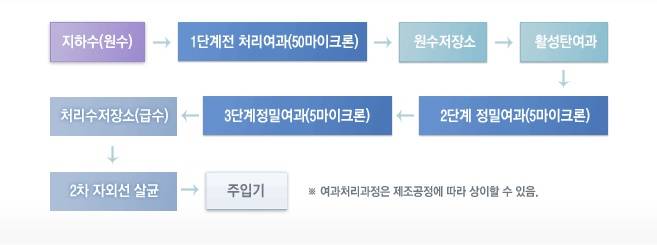 수원지에서 취수한 원수는 정수 공정에 들어가는데, 업체별로 상이할 수 있지만 주로 3단계에 걸쳐 여과된다. 정밀여과까지 통과한 원수는 자외선 살균 등 살균과정을 거쳐 세척, 살균작업을 한 용기에 주입, 밀봉, 검사 후 포장된다. 먹는샘물 제조 시설은 원수저장탱크, 자외선 살균기 등 소독시설을 갖춰야 하고 생수 용기 역시 규격에 맞춘 제품만 사용할 수 있다.