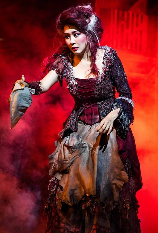 2016년 ‘스위니 토드’에서 러빗 부인 역할을 맡은 옥주현은 능숙한 연기를 보여준다. 주책맞은 아줌마에서 거리낌 없이 사람을 고기 재료로 쓸 정도로 욕망을 점차 드러내는 러빗 부인의 여러 면모를 소화한다. 2019 시즌에서 조승우와의 능청스러운 티키타카로 완벽한 호흡을 자랑한다.