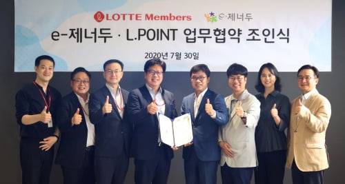 이제너두는 회원사 임직원 복지서비스 강화를 위해 롯데멤버스와 엘포인트 가맹점을 활용한 복지포인트 결제 서비스 업무 협약을 체결, 전국 50만개 엘포인트 가맹점에서 복지포인트를 현금처럼 결제할 수 있게 된다고 전했다.