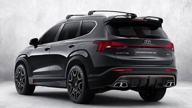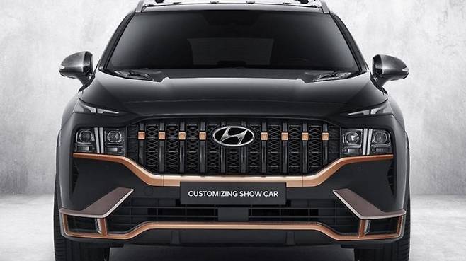‘커스터마이징 쇼카(Customizing Show Car)’로 이름이 붙여진 해당 모델은 지난 6월 온라인을 통해 최초 공개됐으며 섀시는 기존 싼타페 섀시를 그대로 사용하되 전반적으로 강한 이미지를 선보인다.