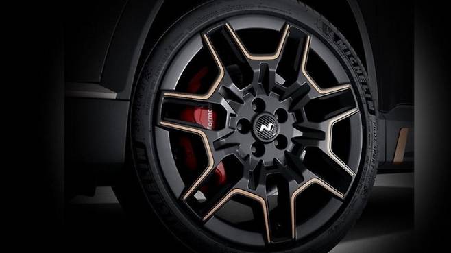 현대차가 설계한 다양한 N 파츠는 더 깊은 프론트 범퍼, 두꺼운 수직 라인 및 골드 액센트가 적용된 블랙 그릴, 후드 벤트, 두 개의 루프 마운티드 스포일러, 4개의 쿼드 배기팁 등이 시선을 사로잡는다. 타이어에는 21인치 휠이 적용된다.