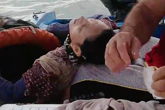 구조 순간을 촬영한 영상에는 두 어부가 여성에게 구명 로프를 던져 붙잡게 하고 나서 여성을 배 쪽으로 끌어당기는 모습이 담겼다. 그러고 나서 한 어부는 탈진해 거의 움직이지 못하는 여성을 배 위로 끌어 올리려고 애썼다.