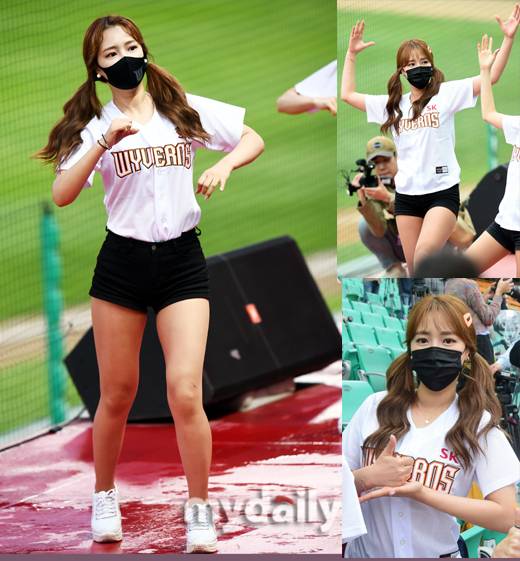 가수로 활동하던 김맑음이 2020년 SK치어리더도 복귀해 팬들과 함께 응원을 펼치고 있다.