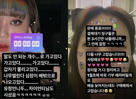 판매를 마무리한 뒤, 이영지는 "다들 너무 고맙습니다. 정리할 거 다 정리하고 1월 초에 바로 기부 때려버릴게요. 배송 늦어지는데도 구매해줘서 고맙습니다"며 벅찬 마음을 전했다.