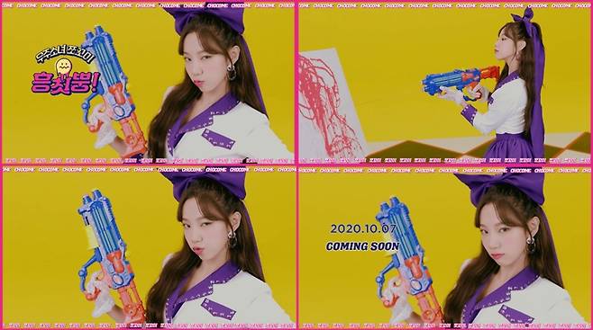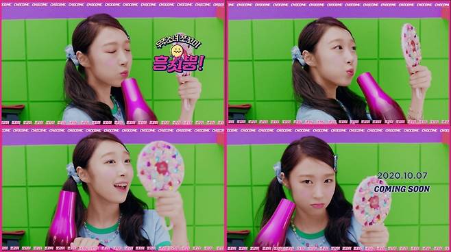 공개된 ‘쪼꼬미 짤’ 속 멤버들은 비비드한 컬러의 배경 속에서 짧은 시간 안에 각자의 상큼발랄한 매력을 가득 담아 눈길을 사로잡고 있다. 다영은 핑크색 권투 글러브를 부딪치면서 볼을 잔뜩 부풀린 토라진 표정을 지었고, 수빈은 핑크색 헤어드라이어와 화려한 손거울을 들고 밝게 미소 지으면서 엉뚱한 면모로 웃음을 자아냈다.