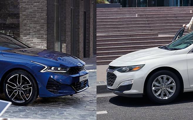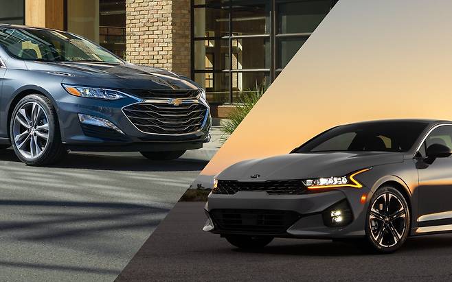 최근 쉐보레 말리부와 기아 K5가 2021년형으로 거듭났다. 큰 변화까진 없지만 몇몇 옵션을 더해 경쟁력을 높였다. 국산 중형 세단 구매를 고려하는 소비자를 위해 말리부와 K5의 크기, 파워트레인, 옵션, 가격 등을 간단히 비교했다.