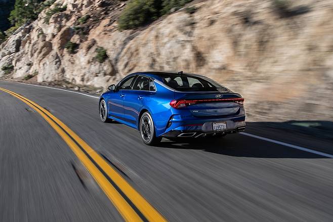 직렬 4기통 2.0L 가솔린 터보 엔진도 있다. 최고출력은 253마력, 최대토크는 36.0㎏·m다. K5와 저울질 해봐도 가장 강력하다. 6단 자동변속기와 결합해 10.5㎞/L의 복합연비를 낸다. 휠은 19인치다.