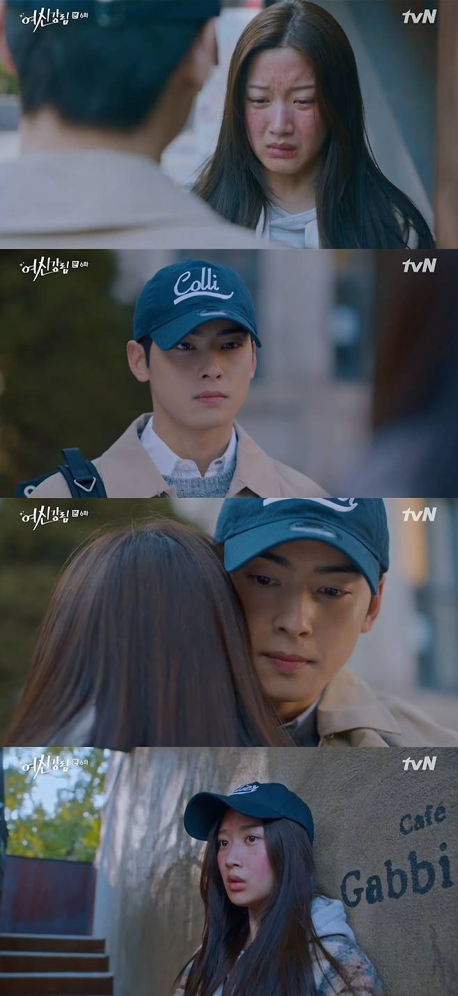 24일 방송된 tvN 수목드라마 '여신강림' 6회에서는 이수호(차은우 분)와 임주경(문가영)이 서로를 위로하는 모습이 그려졌다.