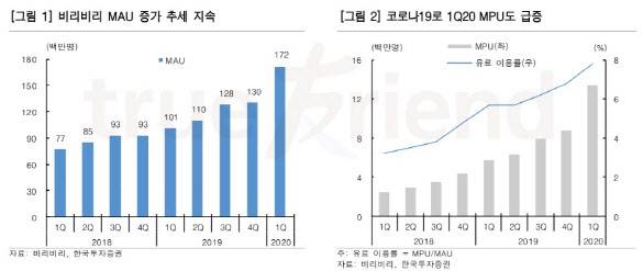 이러한 콘텐츠에 대한 높은 관심은 신종 코로나 바이러스 감염증(코로나19) 국면에서 수혜를 받기도 했다. 코로나19로 인해 온라인 콘텐츠 소비가 늘어나면서 지난 1분기 월간 활성 이용자(MAU)는 1억7200만명으로 전년 동기 대비 70.3% 늘어났으며, 유료 이용자 역시 133.3% 증가한 1340만명을 기록한 것이다.