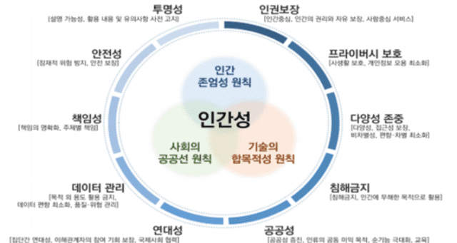 10가지 핵심요건은 ▲인권 보장 ▲프라이버시 보호 ▲다양성 존중 ▲침해금지 ▲공공성 ▲연대성 ▲데이터 관리 ▲책임성 ▲안전성 ▲투명성 등이다.