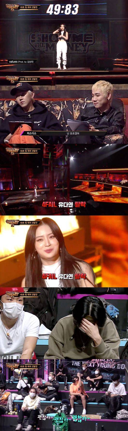 올 FAIL은 예상된 수순이었다. 유다연의 탈락에 다른 참가자들이 더 아쉽다는 반응을 보였다. 누군가는 "안돼"라고 절규하기도 했다. 그리고 마치 짠 듯이 "괜찮아"를 연호하며 유다연을 격려했다.