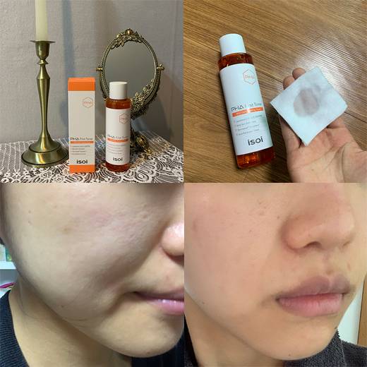 사용 전후 차이가 크지는 않았지만 각질 정리와 피부 결을 한 번에 정리할 수 있어서 좋았다. 콧방울과 모공에 파운데이션이 끼는 것과 화장이 뜨는 현상이 많이 줄어들었다. 따로 각질 케어를 하지 않아도 된다는 점이 정말 좋았다. 수분감이 확실히 많이 좋아지고 매일 팩으로 따로 관리하지 않고도 데일리로 사용하기에 좋았다. 단점은 화장 솜이 없으면 사용이 어렵다는 것.