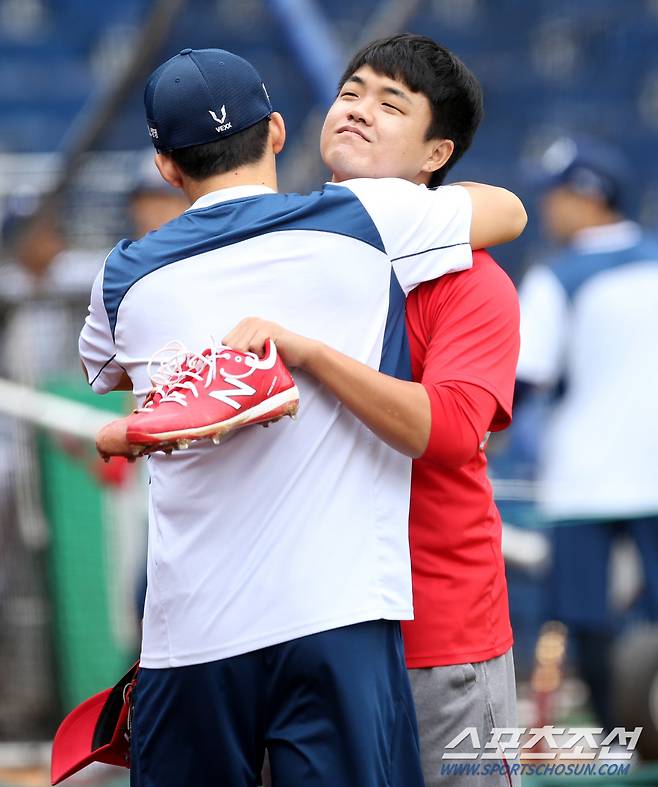오랜만에 창원을 찾은 두 선수는 코칭스탭, 선수들과 반가운 인사를 나누었고 친정팀인 NC 선수들은 빨간색 훈련복을 입은 두 선수를 따뜻하게 맞이했다.