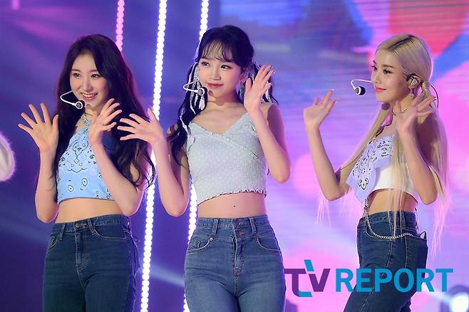 [T포토] 이채연-김채원-권은비 '수줍은 배꼽 노출'