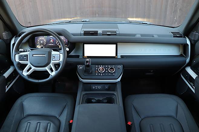 여기에 또 랜드로버다움을 표현하고 있는 것은 센터페시아를 가로지르는 마그네슘 합금 크로스카 빔이다. 일반적으로 눈에 보이지 않도록 하는 차체 구조 및 고정물을 드러내고 있다. 차체 구조인 크로스카 빔의 표면이 인테리어로 활용된 것은 디펜더가 처음이다.