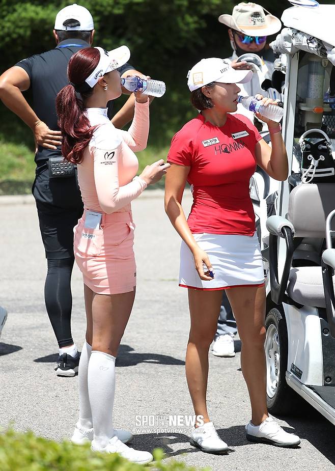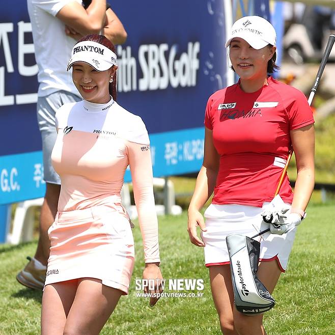 밀착 골프 웨어를 입고 등장한 이시온은 멀리서도 시선을 사로잡는 비주얼을 뽐냈다. 레드 상의로 포인트를 준 이시온은 유현주를 뒤잇는 차세대 골프 여신의 자태를 보여줬다.
