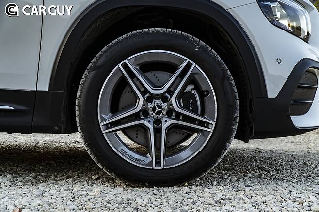 측면부는 GLB 개성이 도드라진다. 곧게 선 필러와 직선으로 이어진 루프, 넉넉하게 두른 스키드 플레이트가 SUV다운 든든함을 준다. 전륜구동임에도 도드라지지 않는 프론트 오버행과 웬만한 중형 SUV보다도 긴 휠베이스가 남다른 느낌을 준다. 휠은 AMG라인 전용 19인치 경량휠이다. 림을 두껍게 처리해 19인치에 달하는 실제 사이즈에 비해 다소 작아보인다. 바깥쪽으로 갈수록 얇아지는 스포크도 ‘스포티’와는 거리가 있다. GLB 외모와는 썩 어울리지 않는 느낌이다.