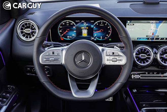 ‘MBUX’로 명명된 벤츠 인포테인먼트 시스템은 AI 음성인식 기능을 제공한다. 라디오 조작, 일정 추가 등의 기능을 편리하게 이용할 수 있다. 터치스크린을 지원해 손 아프게 트랙패드를 만질 일이 없다는 것 또한 장점. 손이 잘 가진 않지만 콘솔 중앙의 트랙패드 역시 필기 인식의 기능을 활용할 수 있다. 자주 사용하는 버튼을 주변에 배치해 조작 편의성이 좋아졌다. 이로써 인포테인먼트 모니터를 조작할 수 있는 방법이 총 세가지다. 이전에는 너무 불친절해서 문제였는데 지금은 ‘과잉친절’이다. 스티어링 휠에 인포테인먼트 화면 일부가 가려지는데 앞서 A클래스와 CLA에서도 같은 문제가 나타났다.