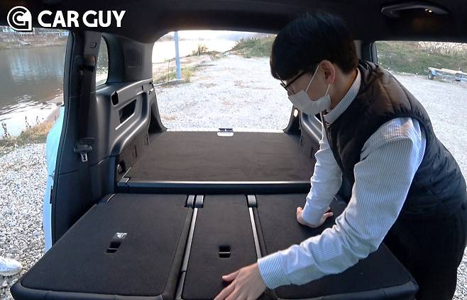 트렁크는 전동식으로 4:2:4 폴딩을 지원하는 2열을 모두 접으면 1805L의 광활한 적재공간이 펼쳐진다. 트렁크 바닥의 단을 낮춰 적재 용량을 늘릴 수 있고 박스 형태의 루프 설계 덕에 비슷한 용량의 SUV보다 공간활용성이 한결 좋아 보인다. 풀-플랫에 가깝지만 2열과 화물칸 사이에 약간의 틈과 둔턱이 있다. 차박을 염두에 둔 소비자라면 평탄화 대책이 필수다.