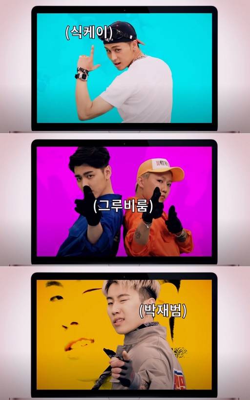 웹 예능 프로그램 워크맨의 진행자인 방송인 장성규(사진)가 래퍼 박재범(맨 아래 사진), 그루비룸(위에서 세번째 사진·박규정·이휘민), 식 케이(〃 두번째 사진 ·본명 권민석)와 함께 노동요 '워크맨'을 선보였다.