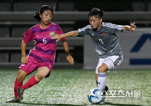 광주 광산중의 신윤아가 19일 경남 창녕스포츠파크에서 진행된 ‘제28회 여왕기 전국여자축구대회’에서 충남 강경여중을 맞아 김하은와 공을 다투고있다. 2020.08.19. 창녕 | 김도훈기자 dica@sportsseoul.com