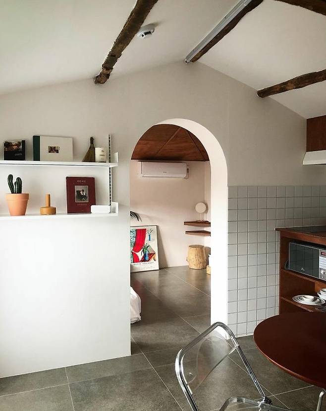 따뜻한 마룻바닥에 배 깔고 감귤을 먹으며 만화책 보는 로망을 지니고 있다면 이곳으로 향하자. 제주 동쪽에 위치한 쉴틈은 지난 5월, 제주 고유의 분위기를 간직한 옛집에 감성을 한 스푼 더해 새롭게 재탄생한 스테이다. 가족 숙소인 안거리와 커플 맞춤 숙소인 밖거리로 나뉘어 운영 중이다. 온돌방은 안거리에 위치해 있으니 예약 시 참고하도록 하자.