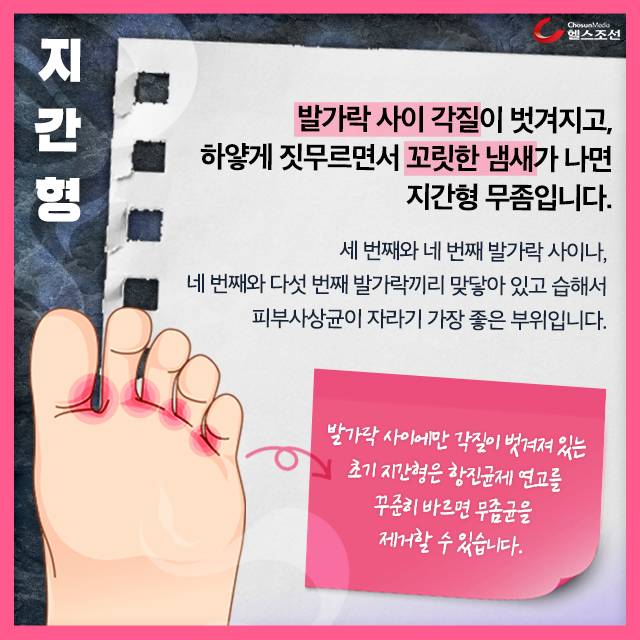 꼬릿한 냄새가 나면 지간형 무좀입니다.