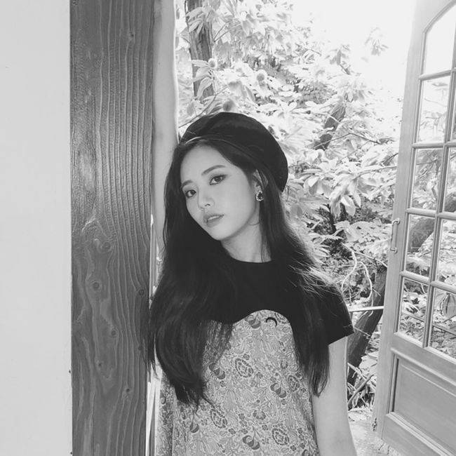 박지원은 화려한 패턴의 뷔스티에 원피스를 입고 베레모로 포인트를 준 모습이다. 이때 박지원은 독보적인 고양이상 미모를 자랑해 팬들의 열띤 반응을 끌어냈다.