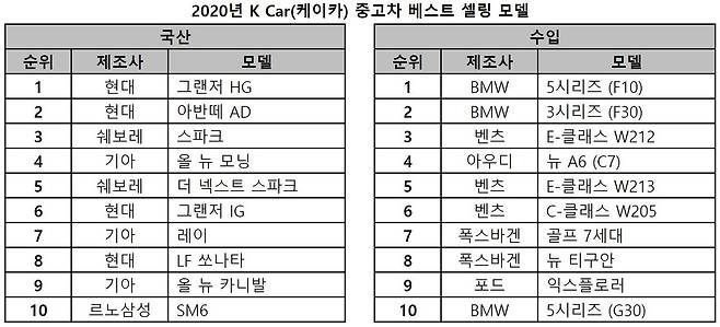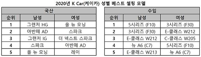 올해 여성고객들이 선택한 베스트 셀링카(국산)는 '올 뉴 모닝', '스파크', '더 넥스트 스파크', '아반떼 AD', '레이' 순으로 전반적으로 운전이 편하고 유지비가 저렴한 경차, 준중형차를 선호하는 현상이 두드러졌다. 내년에는 중고차 시장 내 여성 고객의 비중이 25%를 넘어설 것으로 기대하고 있다.