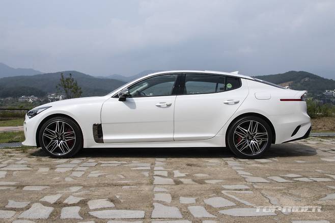 스팅어 외관의 강점은 측면부다. 후륜구동 특유의 프로포션과 함께 루프에서 트렁크까지 완만하게 이어지는 라인이 특징이다. 스팅어 마이스터에는 스타일리쉬한 신규 디자인의 메쉬 타입 휠(18, 19인치)이 적용돼 역동적이고 고급스러운 측면부를 완성했다.