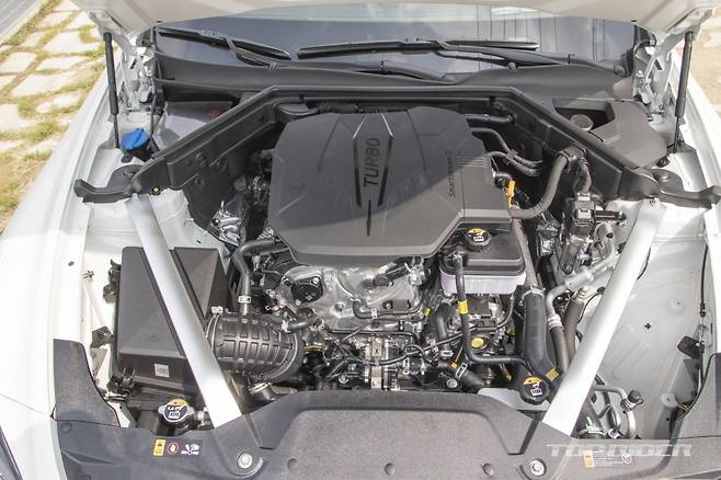 스마트스트림 G2.5 T-GDI 엔진의 회전 질감은 현대기아차 3.0리터 V6 자연흡기 엔진처럼 부드럽다. 주행모드에 관계없이 터보랙을 느낄 수 없다. 주행시 실내로 유입되는 엔진의 소음과 진동도 2.0T 대비 적다. 스포티한 감성을 자극하지 못하는 엔진음과 배기음은 아쉽다.