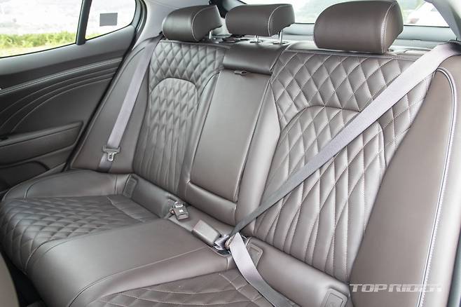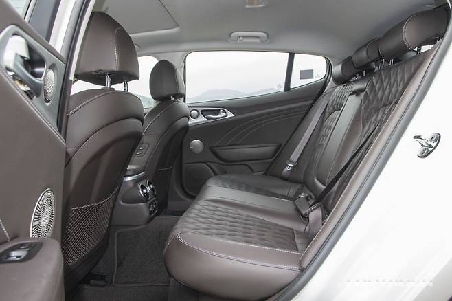 스팅어 마이스터의 운전석 시트 포지션은 국산차와 비교해 낮다. BMW 3시리즈를 연상시킨다. 낮은 시트 포지션에도 불구하고 전방 시야가 좋다. 2열 레그룸은 형제차 G70와 비교해 넓다. 신장 180cm의 성인 남성이 앉아도 여유 있다. 반면 헤드룸은 여유 공간이 부족하다.