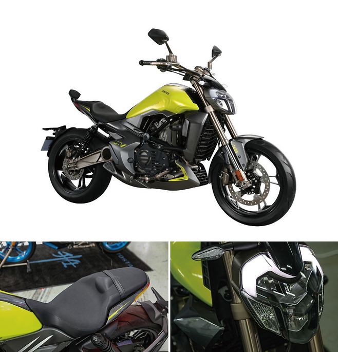 존테스 310 모델 중 주목되는 것은 네이키드 버전인 310R이다. 금방이라도 로봇으로 변신할 것 같은 미래지향적이고 날렵한 외형에 레버하나까지도 꼼꼼하게 디자인된 파츠들을 사용하는 등 완성도가 기존의 중국산에서 기대하는 수준을 크게 넘어선다. 디자인에서 눈길을 끄는 싱글사이드 스윙암도 쿼터클래스 최초다. 엔진은 단기통 DOHC 312cc엔진은 34.8마력에 30Nm의 토크를 내며 1394mm로 짧은 휠베이스는 민첩한 운동성능을 기대하게 한다. 선명한 풀컬러의 TFT계기반과 연료주입구와 시트까지 버튼으로 열 수 있는 똑똑한 스마트키 시스템, LED등화 장치 등 기존에 없던 프리미엄 사양을 기본으로 탑재하고 있다. 이번 KSEF에 310R의 레이스 베이스 머신이 참전하기도 했다.