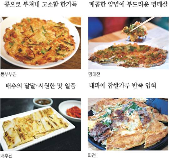 <이우석의 푸드로지>시원한 배추전..고소한 육전..대표선수 파전.. 뜨거울때 煎해야 '제맛'