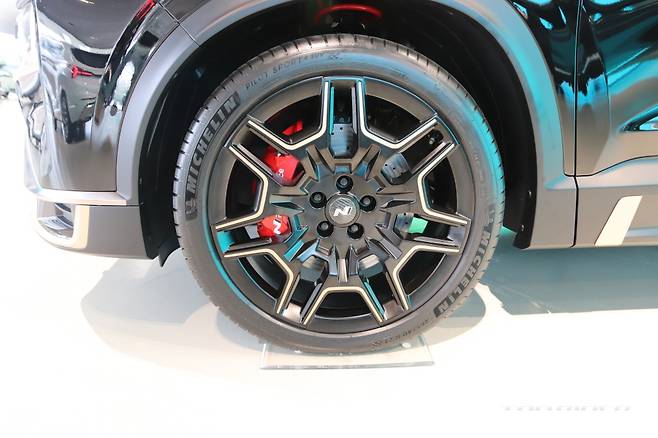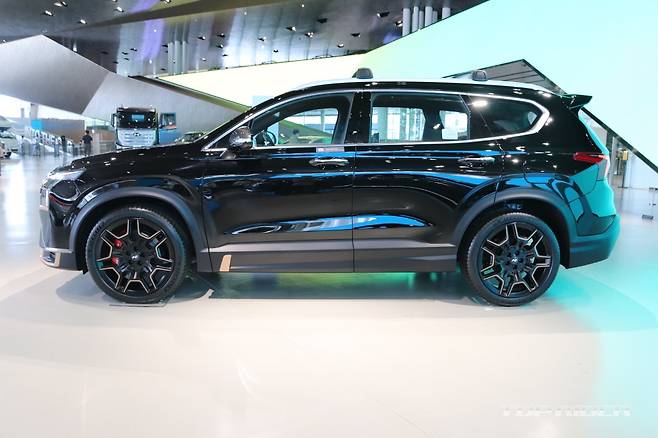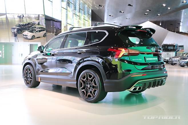 현대차 신형 싼타페 전용 N 퍼포먼스 패키지가 공개됐다. 싼타페 전용 N 퍼포먼스 패키지는 공격적인 디자인의 외관 파츠, 고급감을 높인 실내 파츠 등으로 구성됐다. 특히 카본 및 알칸타라 소재가 대거 적용됐다. 싼타페 N 퍼포먼스 패키지는 올 하반기 판매될 예정이다.