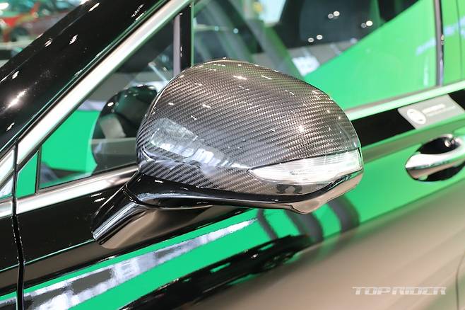 전면부 라디에이터 그릴은 블랙으로 마감됐으며, 범퍼는 공격적으로 디자인됐다. 그릴과 전면부 및 후면부 범퍼에 제네시스 신형 G80의 사하라베이지 외장 컬러와 유사한 색상의 포인트가 더해졌다. 특히 21인치 전용 휠은 국산 중형 SUV 기준 가장 크다.