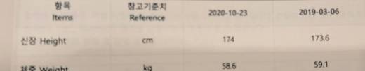 지민은 13일 방탄소년단 공식 트위터에 "제 키가.. 와우 !!"라는 글과 함께 한 장의 사진을 게재했다. 공개된 사진에는 지난해 3월, 올해 10월에 각각 검사한 지민의 키와 체중 정보가 담겨있다.