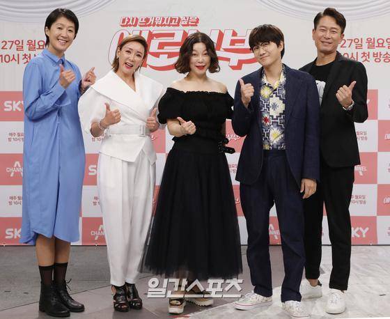 홍진경을 비롯한 출연진이 27일 오후 온라인 생중계로 진행된 SKY & 채널A 신규 예능 '애로부부' 제작발표회에 참석해 포즈를 취하고 있다.
