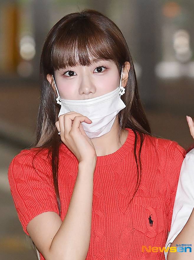 걸그룹 에이프릴 이나은이 7월 20일 오후 오후 경기도 고양시 일산동구 장항동 MBC 드림센터에서 진행된 MBC every1 예능 ‘주간 아이돌’ 녹화에 참석하며 포즈를 취하고 있다.