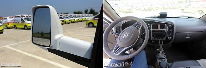 좀 더 세련되어진 포터II 베이스의 실내와 자동변속기, 외부 시계를 개선한 아웃사이드 미러 익스텐션 외에 전체적인 변화는 크지 않다. 외부에서 슬라이딩 인 제어를 위해서는 실내의 세이프티 버튼을 눌러주어야 작동이 이루어진다. 하부에는 80리터 청수 탱크와 80리터 오수 탱크가 마련되어 있고 버튼 하나로 제어 가능한 전자식 드레인 밸브가 적용되어 상당히 유용하게 활용할 수 있다.
