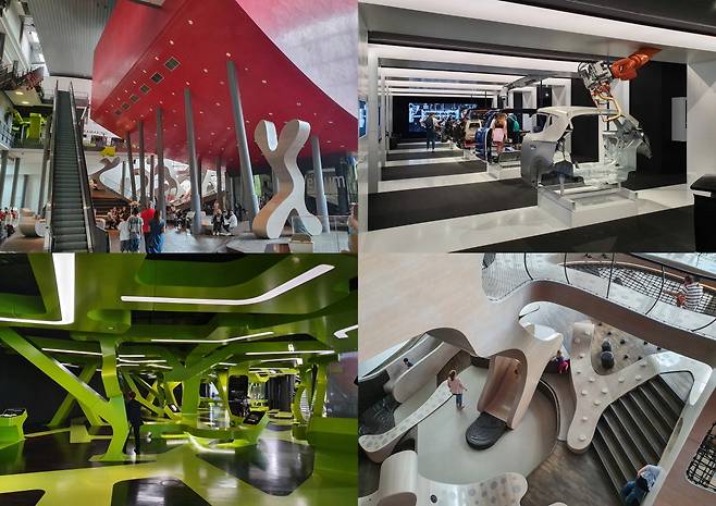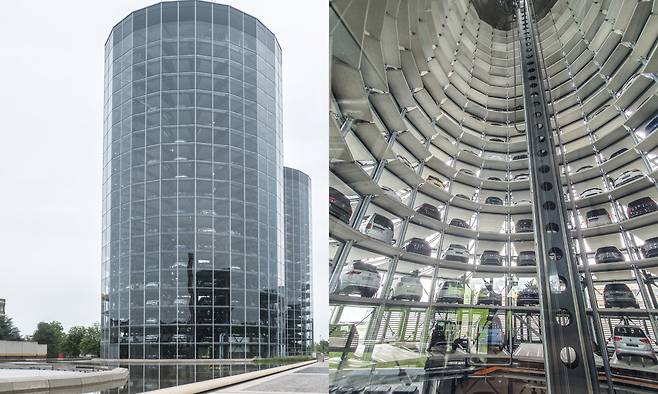 아우토슈타트를 상징하는 것 중 하나인 아우토 투름(자동차 탑)은 50m에 육박하는 높이의 원형 건물로 고객에게 인도될 신차 약 400여 대가 잘 보관되어 있습니다. 예약(유료)을 하면 타워 안에 마련된 오픈 엘리베이터를 타고 꼭대기까지 올라가 볼 수 있습니다. 하지만 여기까지 와서 그냥 차만 찾아서 갈 사람들은 없을 겁니다. 폭스바겐 그룹에 포함된 주요 자동차 브랜드 전시관을 둘러보는 즐거움이 기다리고 있으니까요.