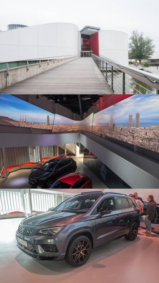 세아트 파빌리온은 파노라마처럼 펼쳐진 바르셀로나 전경 이미지로 시작됩니다. 이 브랜드가 어디서 출발했는지, 어디를 대표하고 있는지를 분명하게 보여주고 있다고 하겠는데요. 1950년 바르셀로나 근교에서 스페인 국영 자동차 회사로 출발한 세아트는 1990년 완전히 폭스바겐의 자회사가 됩니다. 운전의 즐거움, 재미에 초점을 맞췄고, 가성비도 좋아 젊은 층에 인기가 높습니다. 아우디 영향을 많이 받아 스타일까지 좋아져서 쑥쑥 성장 중입니다.